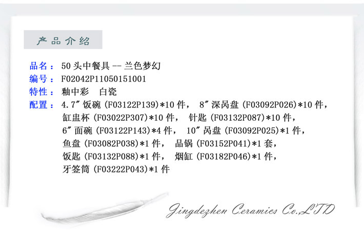 下一篇:56頭青花玲瓏花卉中餐具