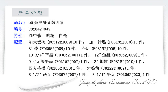 56頭中餐具韓國菊