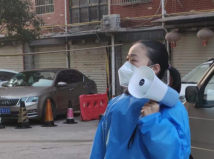 在這場沒有硝煙的戰(zhàn)“疫”中,邵建華與邵燕翎既是父女,更是“戰(zhàn)友”。父親每日在現(xiàn)場維持秩序,女兒每天拿著喇叭挨家挨戶的督促居民下樓做核酸,幫助老年人出示核酸碼等工作。父女倆各盡其責(zé)、互相鼓勵、并肩作戰(zhàn),用最樸實的行動筑牢疫情防線,他們和大家一樣,希望通過共同努力,早日戰(zhàn)勝這場疫情阻擊戰(zhàn)。